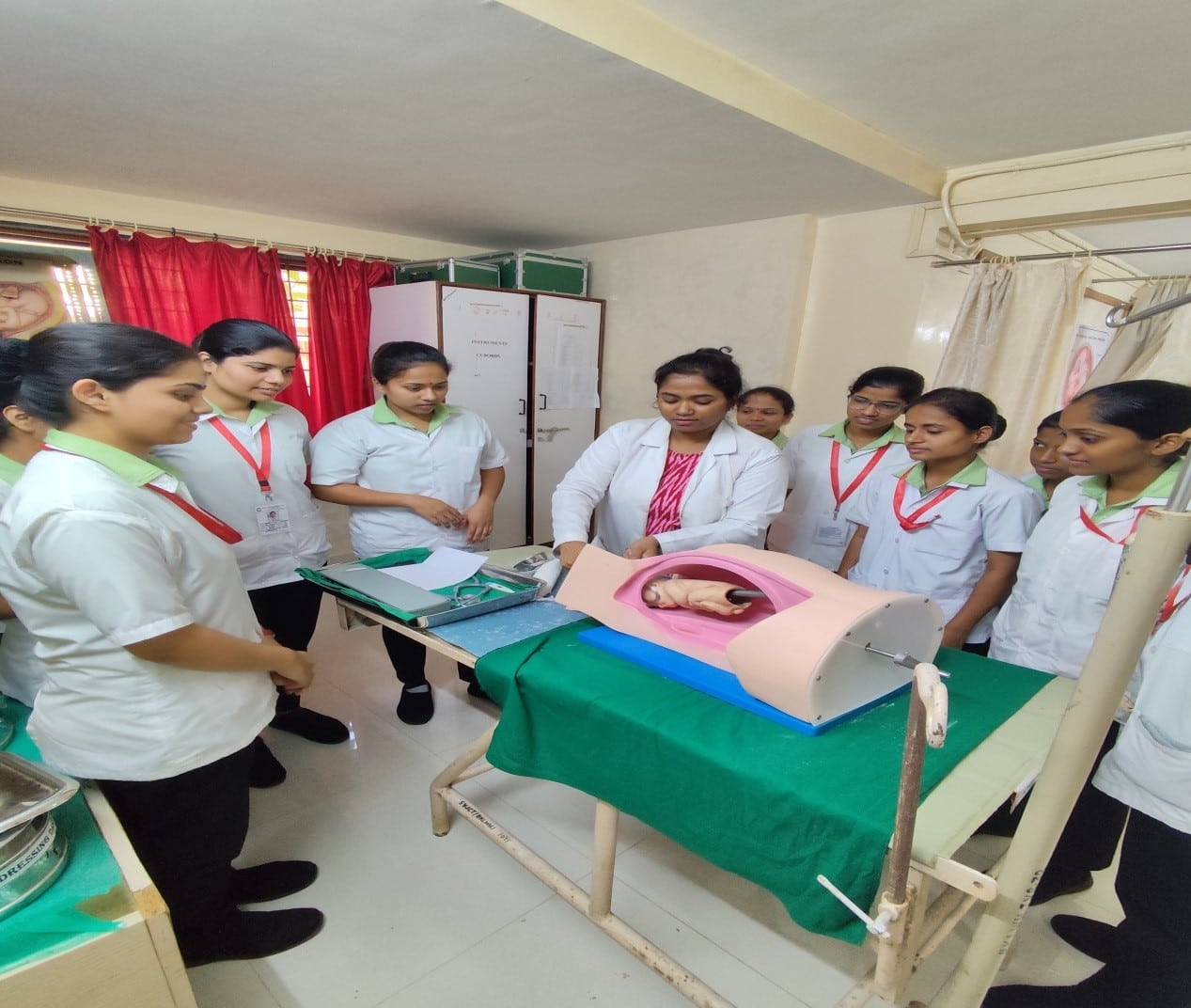 The Maternal and Child Health (MCH) Laboratory is a specialized facility that focuses on the academic and practical training of students in community health, particularly in areas related to maternal, neonatal, and child care. It is equipped with various models, simulators, charts, and educational materials that promote hands-on learning in antenatal, postnatal, new-born, and paediatric care.